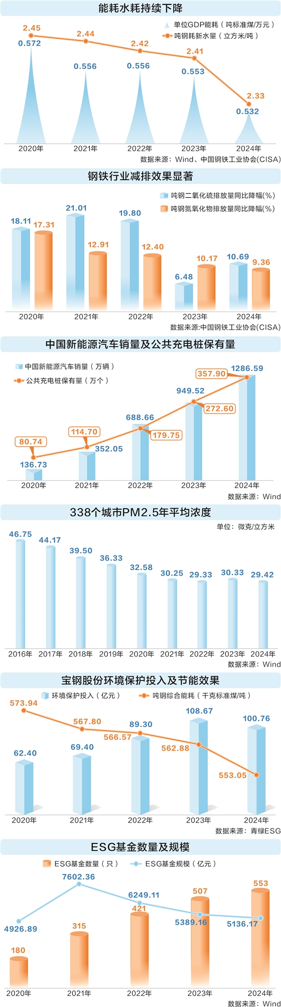 以行业龙头宝钢股份为例,据青绿ESG数据,公司2024年环境保护投入达100.76亿元,较2020年增长61.47%;吨钢耗新水量较2020年下降13.79%;氮氧化物和硫氧化物排放较2020年下降幅度均超四成。