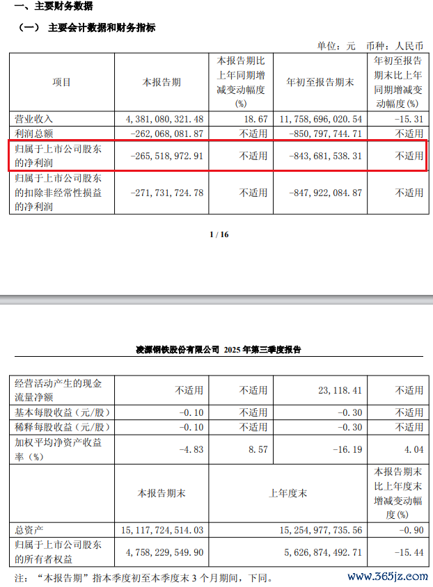 10月24日,凌钢股份发布公告。第三季度,公司营收43.81亿元,同比增长18.67%,但净利润亏损2.66亿元。前三季度,公司营收117.59亿元,同比下降15.31%,净利润亏损8.44亿元。